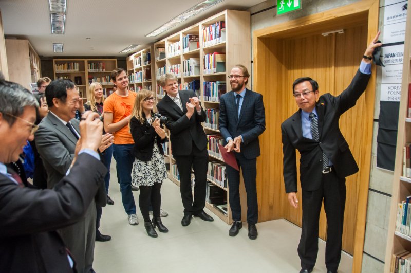 The Head of Taipei Mission in Republic of Latvia Mr. Rong-chuan Wu during the opening of Asian Books Space in 2016 / Source: VMU Centre for Asian Studies Taipei misijos Latvijos Respublikoje vadovas Rong-chuan Wu per Azijos knygų erdvės atidarymą 2016 m. / Šaltinis: VMU Azijos studijų centras