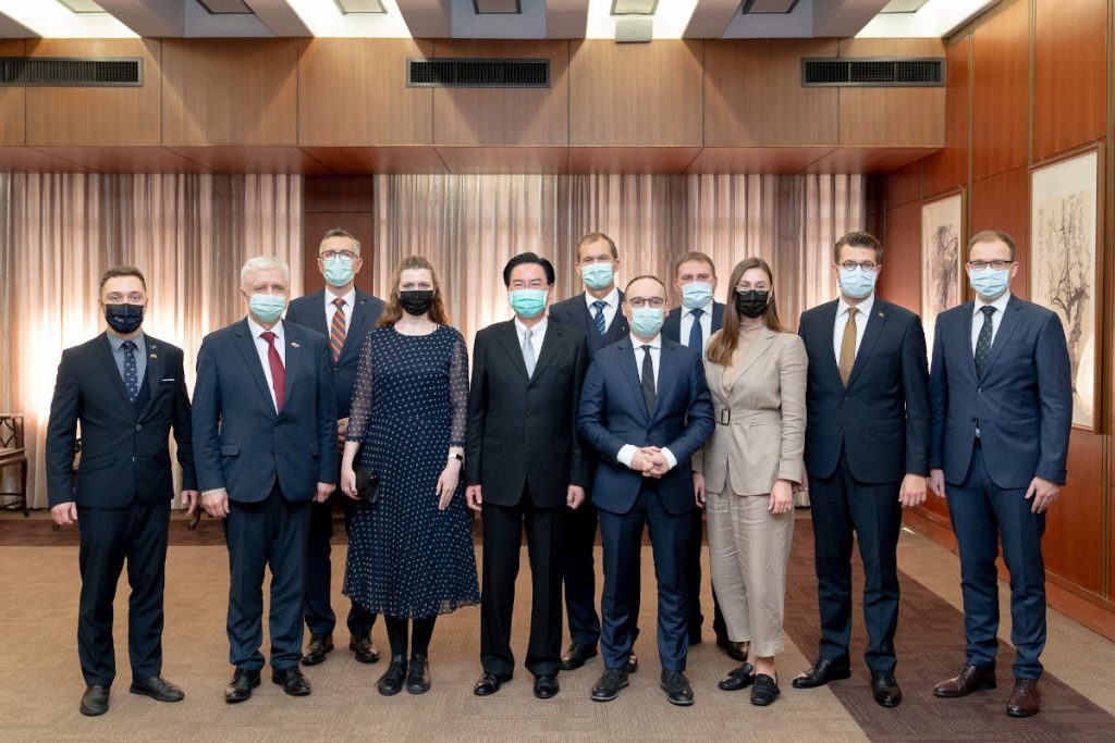 Minister of Foreign Affairs Lin Chia-lung hailed the importance of security and economic ties between Taiwan and Lithuania as he met with a delegation of Lithuanian lawmakers in Taipei. The eight-member Seimas delegation is led by Lithuania-Taiwan Parliamentary Friendship Group chairperson Ruslanas Baranovas, and includes Lithuanian Parliament’s Committee on National Security and Defense chairperson Giedrimas Jeglinskas, and Committee on Foreign Affairs vice chairman Matas Maldeikis. July 10, 2025 / Source: Taiwan MOFA Užsienio reikalų ministras Lin Chia-lung susitikęs su Lietuvos parlamentarų delegacija Taipėjuje pabrėžė saugumo ir ekonominių ryšių tarp Taivano ir Lietuvos svarbą. Aštuonių narių Seimo delegacijai vadovauja Lietuvos ir Taivano parlamentinės draugystės grupės pirmininkas Ruslanas Baranovas, joje taip pat yra Lietuvos Respublikos Seimo Nacionalinio saugumo ir gynybos komiteto pirmininkas Giedrimas Jeglinskas ir Užsienio reikalų komiteto pirmininko pavaduotojas Matas Maldeikis. 2025 m. liepos 10 d. / Šaltinis: Taivano užsienio reikalų ministerija 林佳龍