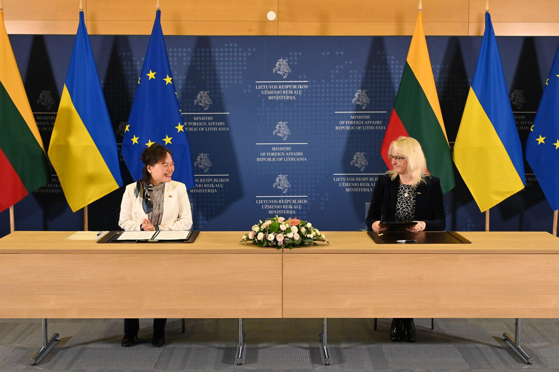 On October 30, 2024, during the Lithuanian Development Cooperation Conference, a memorandum was signed on a US$5 million contribution that Taiwan will allocate to Lithuanian-implemented reconstruction projects in Ukraine. Lidija Kašubienė, Constance Wang / Source: LtAid 2024 m. spalio 30 d., Lietuvos vystomojo bendradarbiavimo konferencijos metu, buvo pasirašytas memorandumas dėl 5 mln. JAV dolerių įnašo, kurį Taivanas skirs Lietuvos įgyvendinamiems rekonstrukcijos projektams Ukrainoje. Lidija Kašubienė, Constance Wang / Šaltinis: LtAid