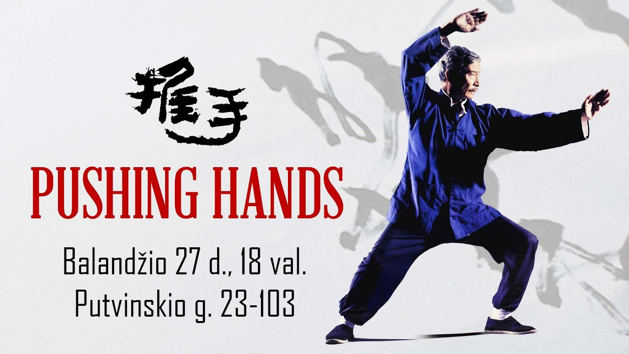 2023-04 – movie screening poster-banner Plakatas filmui „Pushing Hands“, kuris buvo rodomas Vytauto Didžiojo universitete 2023 m. balandžio 27 d.