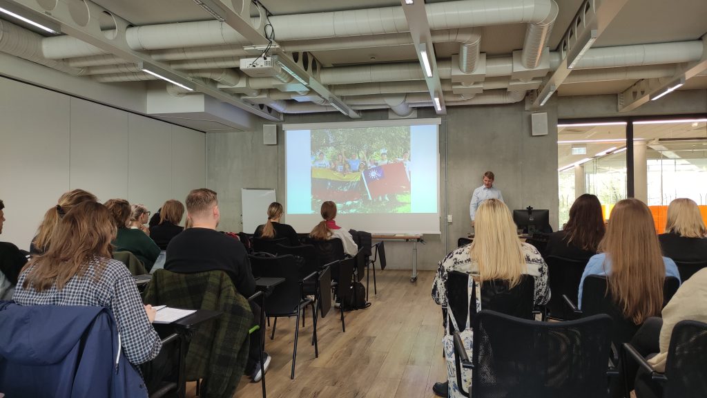 Marius Jovaiša public lecture about Taiwan at Vytautas Magnus University, 23 October 2024 / Source: VMU Centre for Asian Studies Mariaus Jovaišos vieša paskaita apie Taivaną Vytauto Didžiojo universitete, 2024 m. spalio 23 d. / Šaltinis: VDU Azijos studijų centras