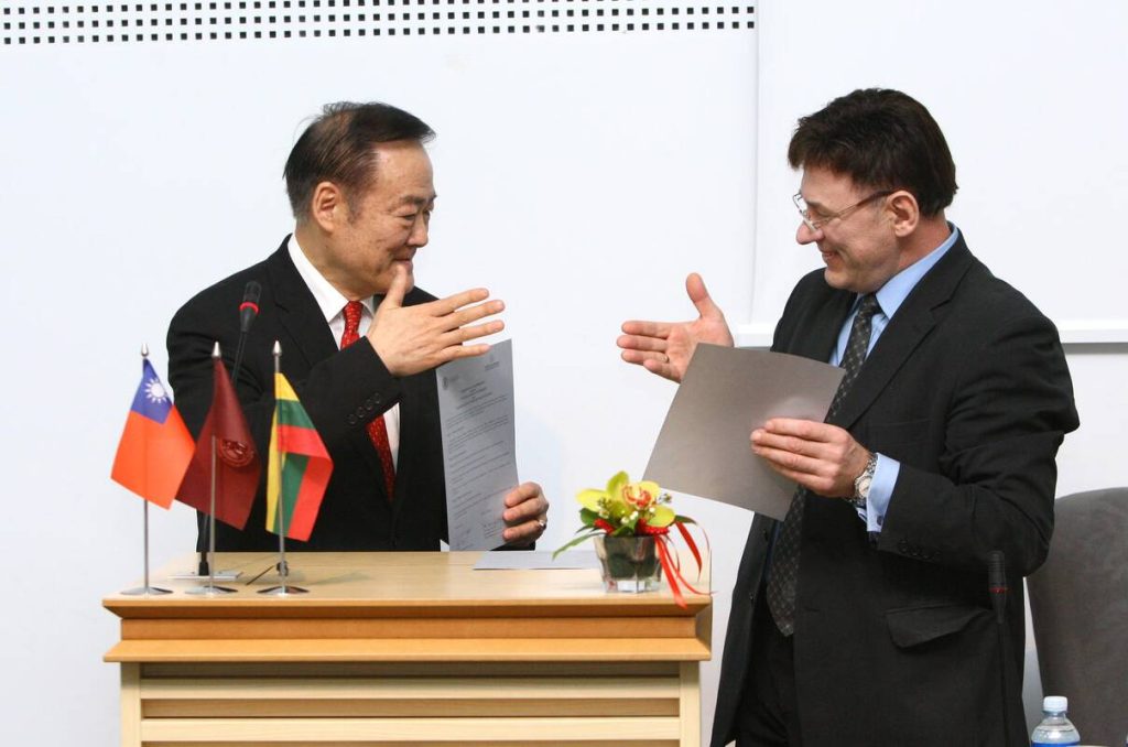 A moment from the opening of the Taiwan Center at Vytautas Magnus University on March 1, 2013. Gary K.Y. Ko, head of the Taipei Mission in Riga, and Prof. Juozas Augutis, rector of Vytautas Magnus University. / Source: Vytautas Magnus University Akimirka iš Taivano centro atidarymo Vytauto Didžiojo universitete 2013 m. kovo 1 d. Taipėjaus misijos Rygoje vadovas Gary K.Y.Ko ir VDU rektorius prof. Juozas Augutis. / Šaltinis: VDU