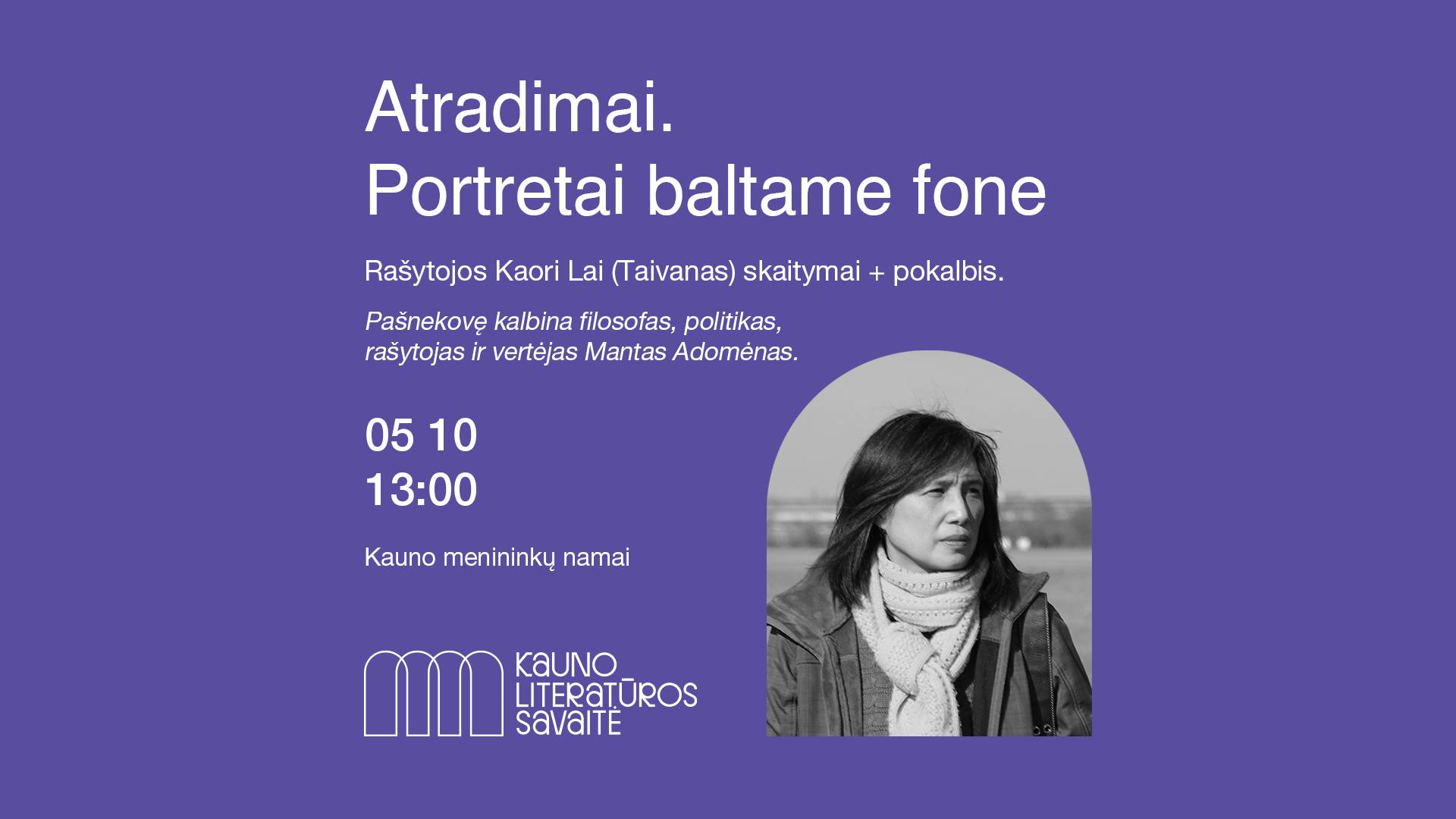 Kaori Lai in Kaunas Literature Week poster, 2025 May 10 Kaori Lai Kauno literatūros savaitėje, 2025 m. gegužės 10 d., plakatas