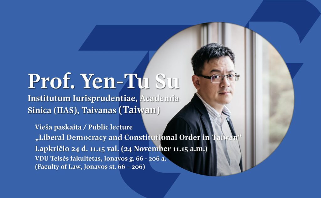 VDU_TF_Paveikslėlis-naujienai_2022-11-24 2024 m. lapkričio 24 d. VDU atvirą paskaitą „Liberal Democracy and Constitutional Order in Taiwan“ skaitė prof. Yen-Tu Su iš Academia Sinica.