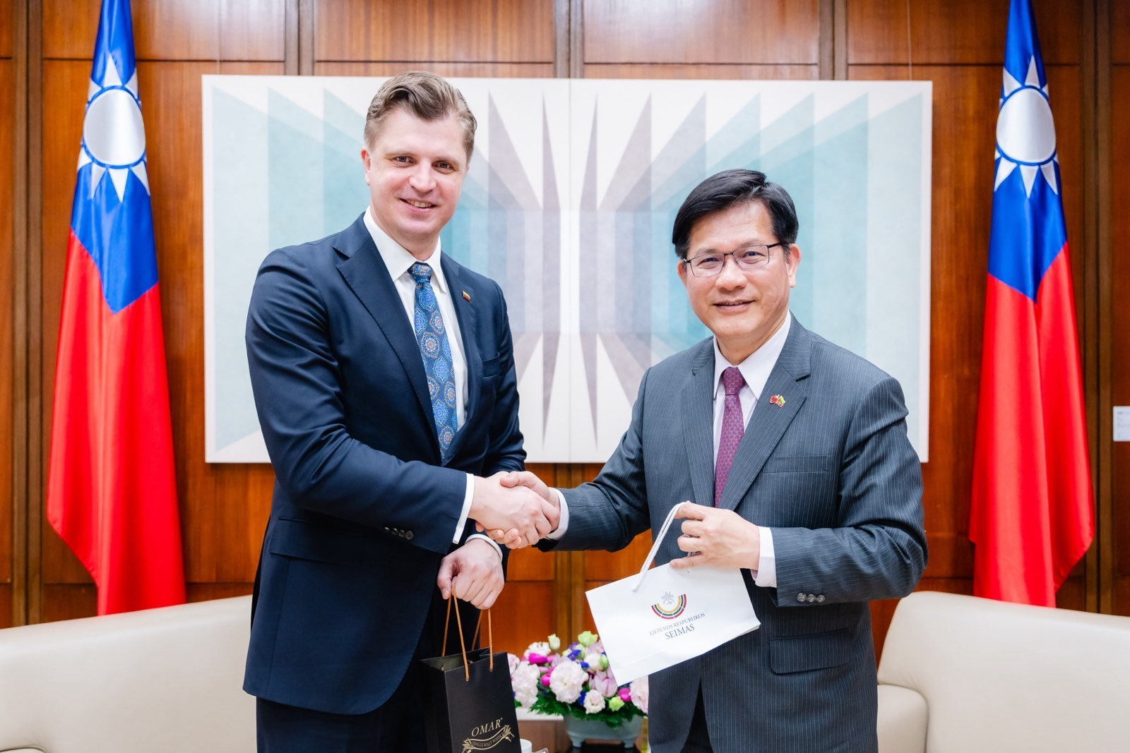 MOFA Minister Lin Chia-lung met with Chair of the Lithuanian Seimas Committee on National Security and Defence Giedrimas Jeglinskaskas, February 25, 2025 / Source: Taiwan MOFA Užsienio reikalų ministras Lin Chia-lung susitiko su Lietuvos Seimo Nacionalinio saugumo ir gynybos komiteto pirmininku Giedrimu Jeglinskaskasu, 2025 m. vasario 25 d. / Šaltinis: Taivano užsienio reikalų ministerija